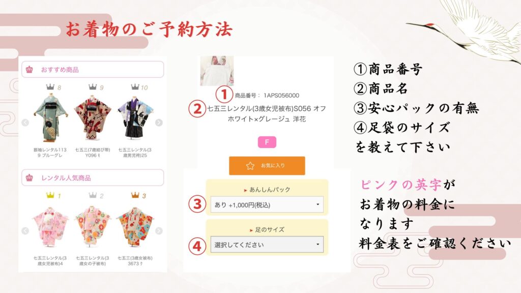 上記よりログインして頂き、お着物をお教えくださいませ。