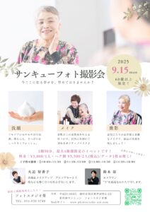 9/15(月祝日)サンキューフォト撮影会 9/15(月祝日)サンキューフォト撮影会を開催します!今ここに在る幸せを、留めておきませんか? 【イベントの内容】①アルソア大迫智香子さんによる「洗顔」アルソアのモチモチ泡で […]